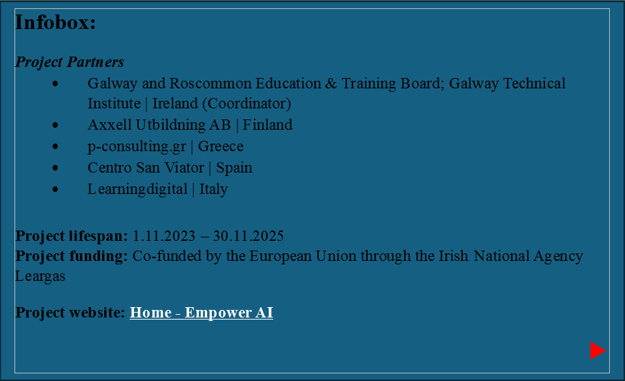 EmpowerAI is a collaboration project funded by Erasmus+ KA220 VET that aims to equip women in female-dominated professions, particularly entrepreneurs and vocational teachers, with the knowledge and tools to use Artificial Intelligence (AI) as a support in their daily professional lives. Through an Online Training Course (OTC) and an AI Compendium open for all, participants can explore AI on their own terms. The two chapters of the OTC provide a simple yet powerful introduction to what AI is, how it works, and how it can serve as a practical support in professional life. The aim is to, through education, inspiration, and practical examples, encourage participants to view AI as a digital assistant rather than a technical challenge.